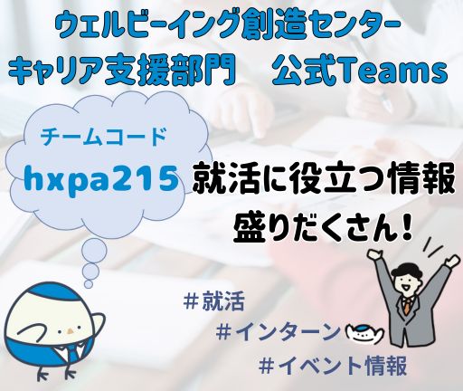 ウェルビーイング創造センターキャリア支援部門に届いている求人情報はキャリタスUCを使って検索ができます。